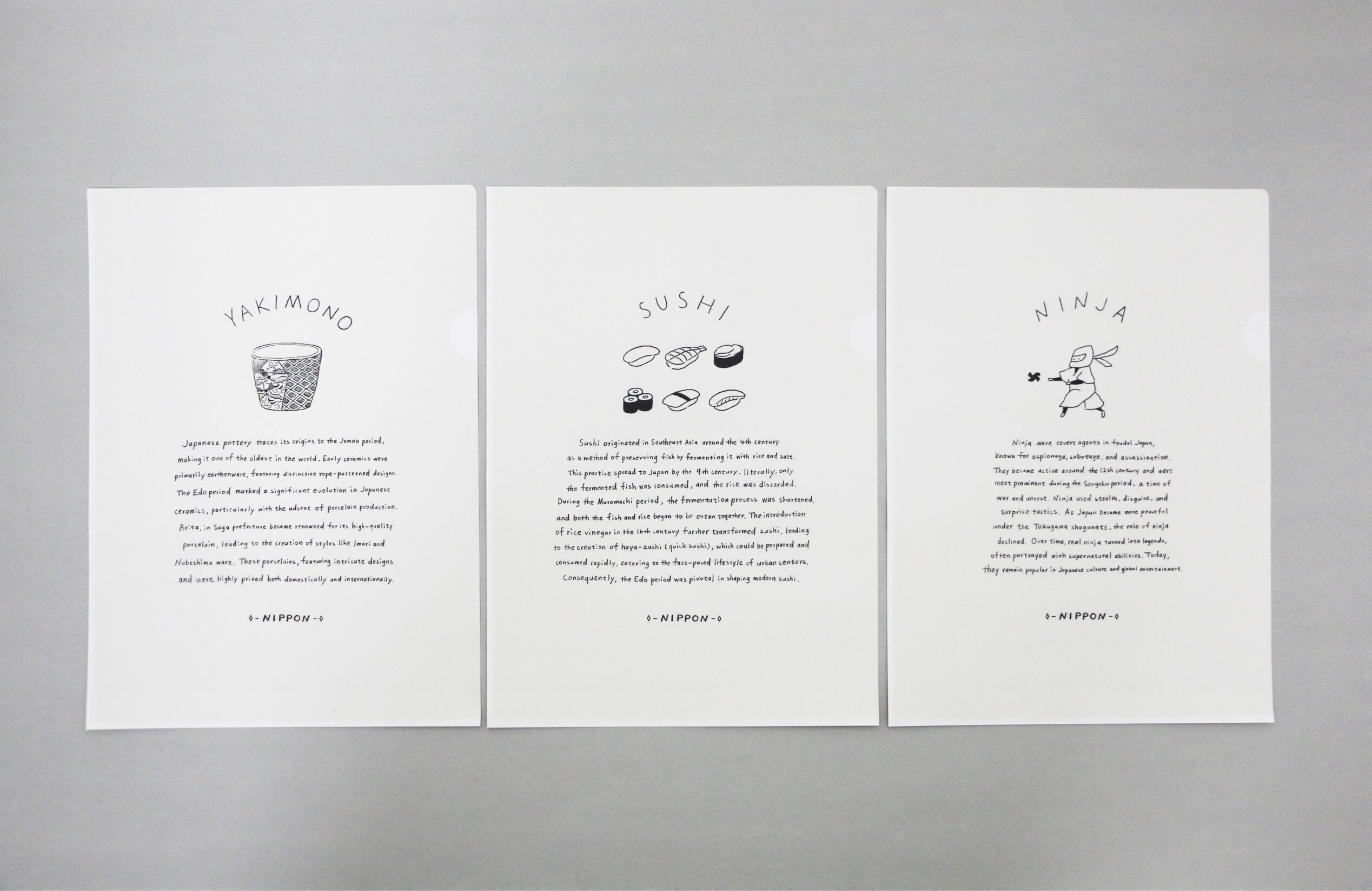 紙製のファイルで、新しいものが好きな方にぴったりのアイテム。人気のある歴史的な日本文化のイラスト(焼き物・寿司・忍者)の3枚セット。紙ならではの肌触りの良さがあり、仕事・勉強・趣味など、さまざまな使用場面で心地良さを感じられます。封筒代わりに書類を挟んで渡しても。紙製なので鉛筆やペンでそのまま文字を書き込むことができ、機能性とデザイン性を兼ね備えています。色を塗ったりデコったり、楽しみ方・使い方はいろいろ。また、書類をそのままシュレッダーできるため、分別の手間が省け、環境にも優しい商品です。