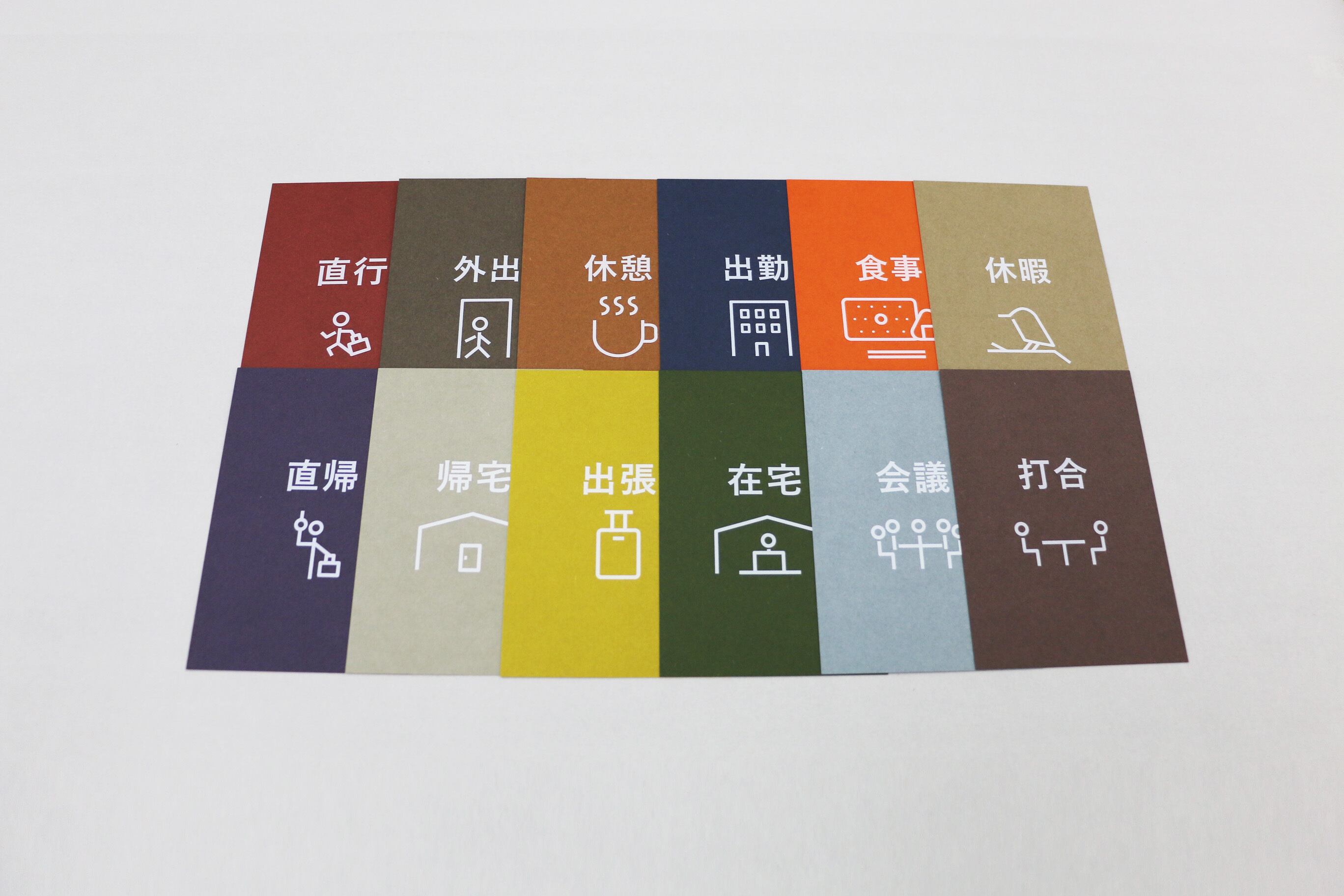 12色の手触りの良い紙に白インクで印刷されたオフィスメッセージ。オリジナルのメタルスタンドは別売りです。
