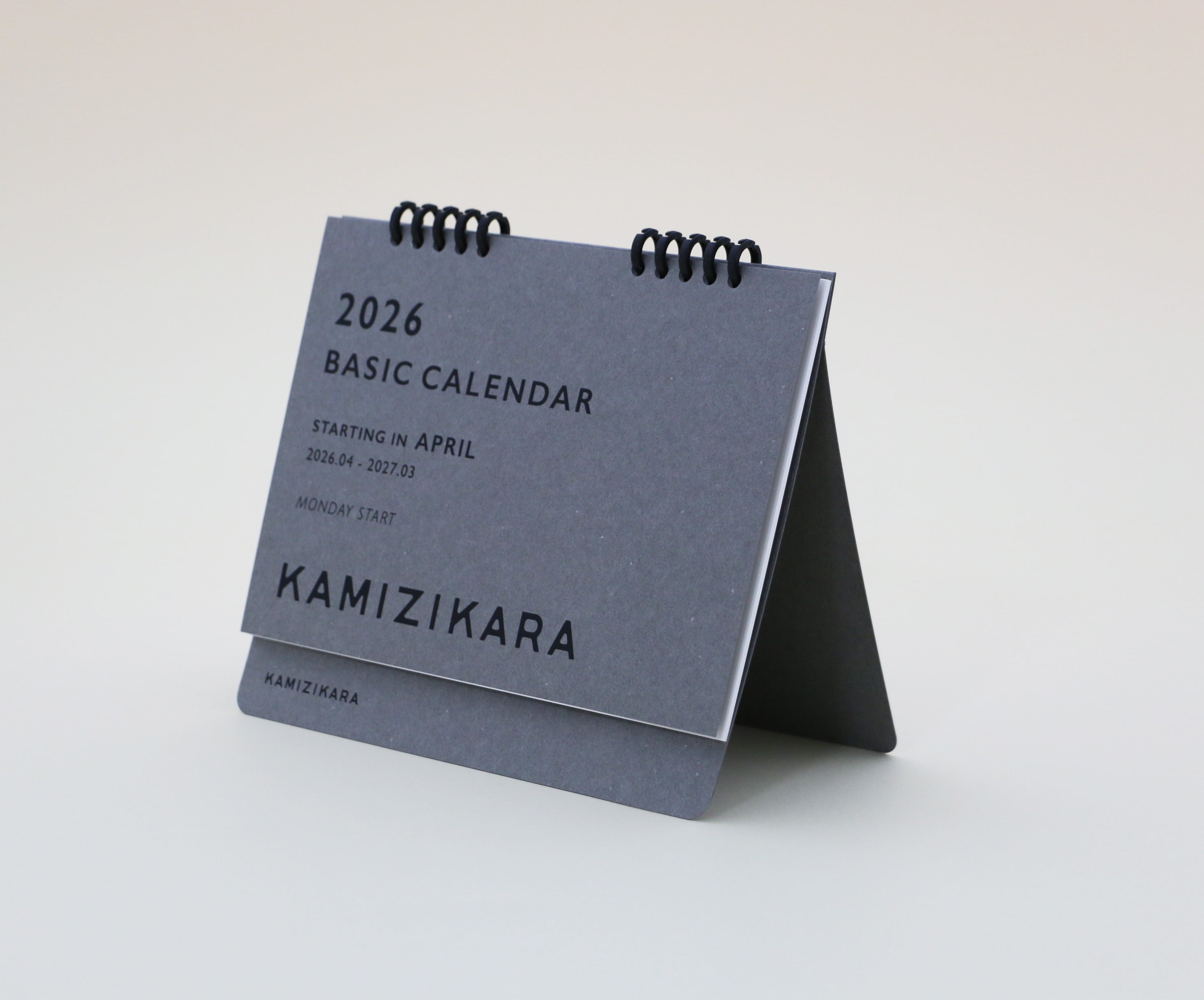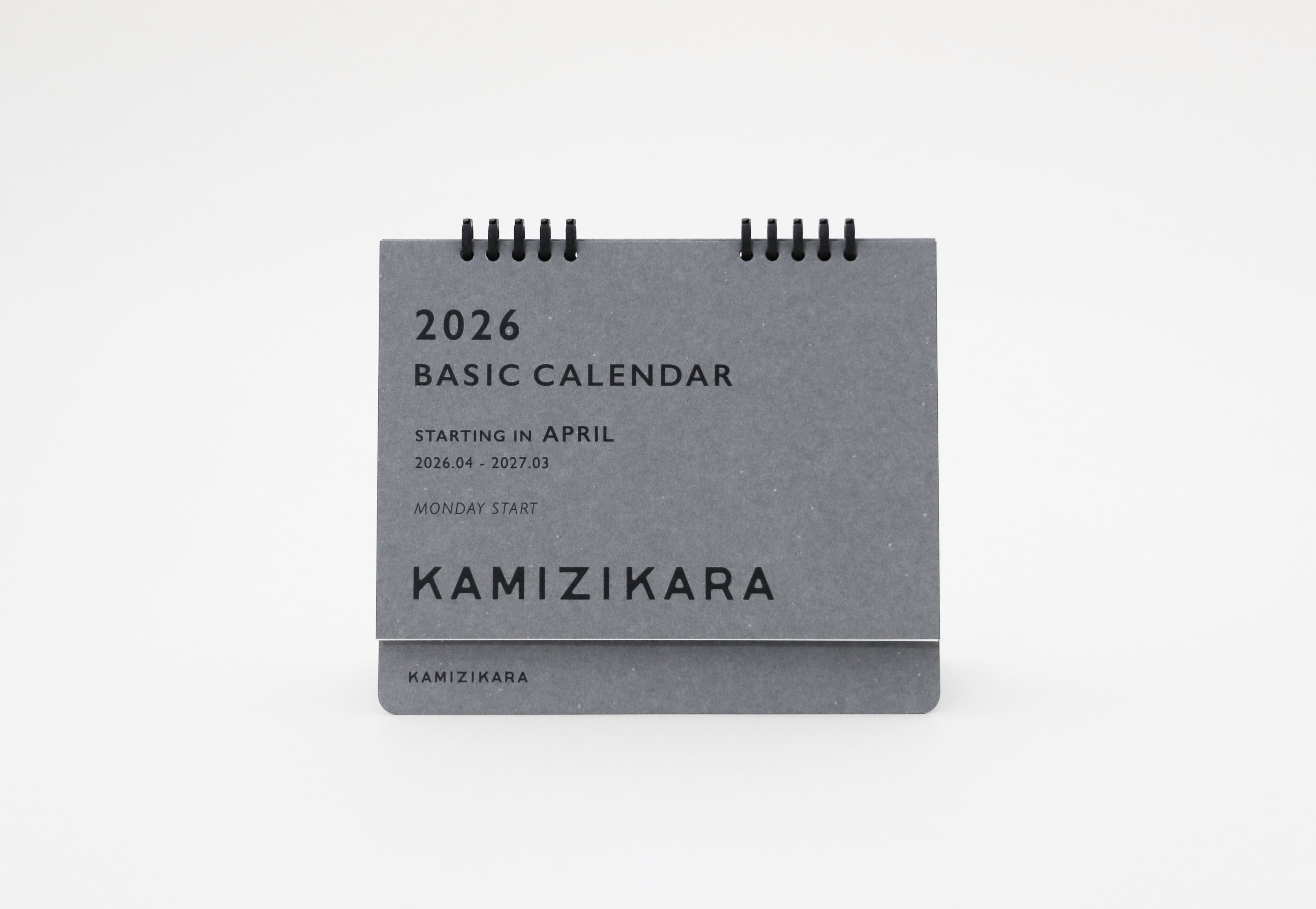 ベーシックカレンダー グレー 2026年 4月始まり 月曜始まり 卓上 1冊