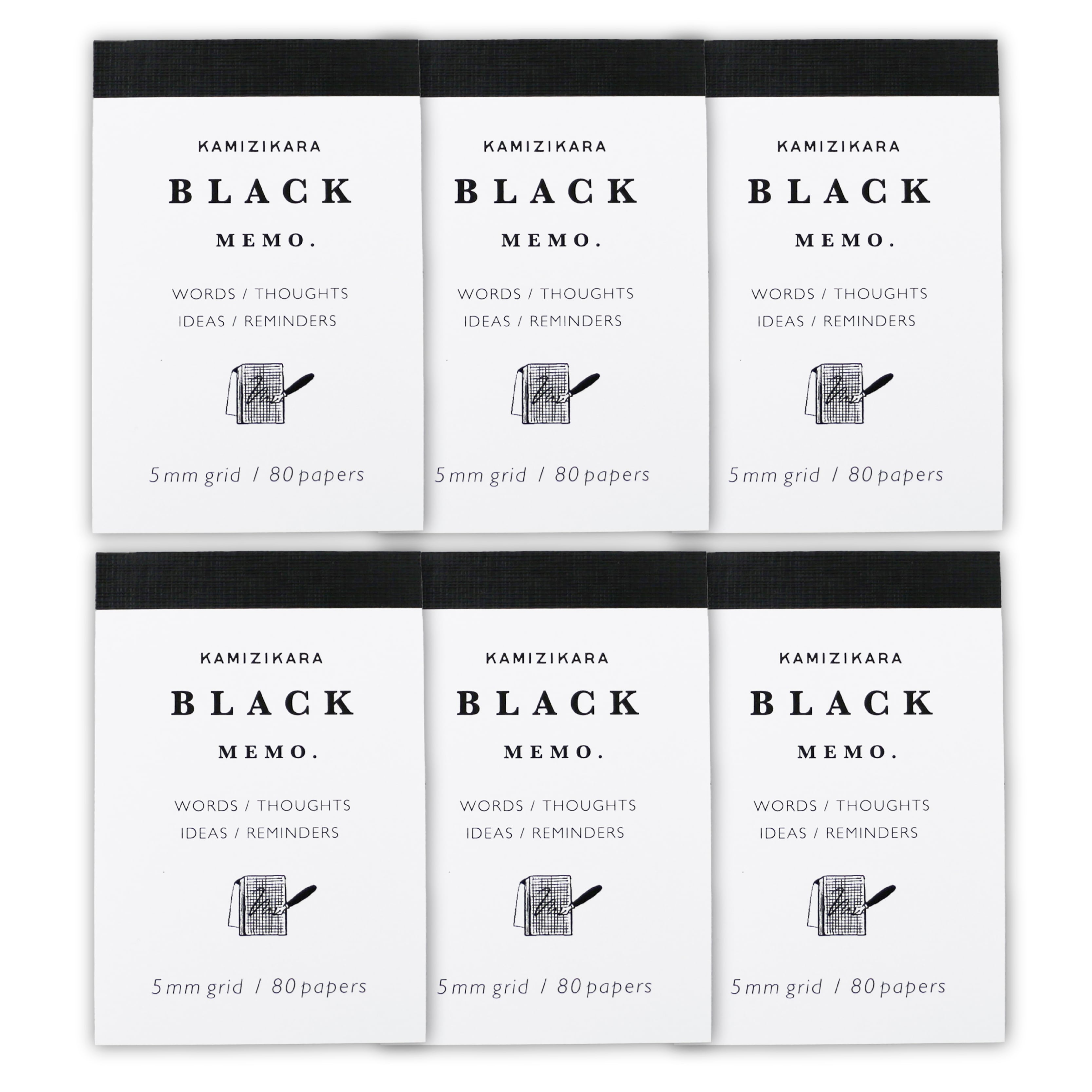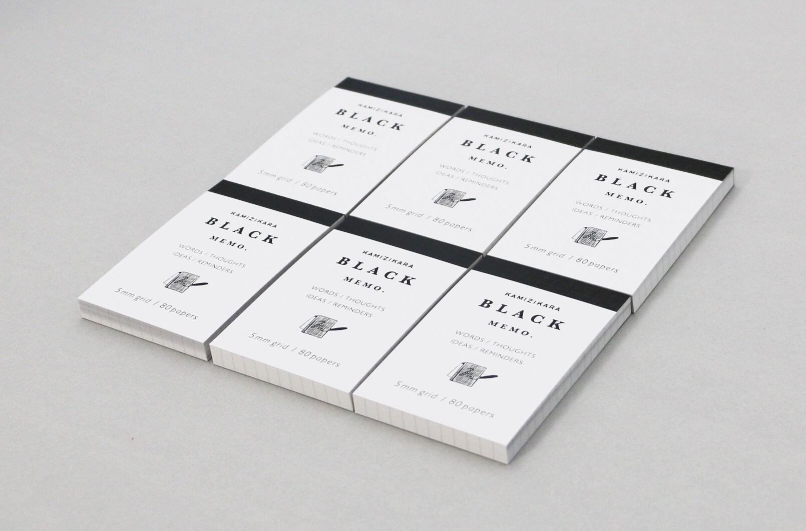 洗練された黒の佇まい。方眼メモ、ブラック(小)6冊セット 。
