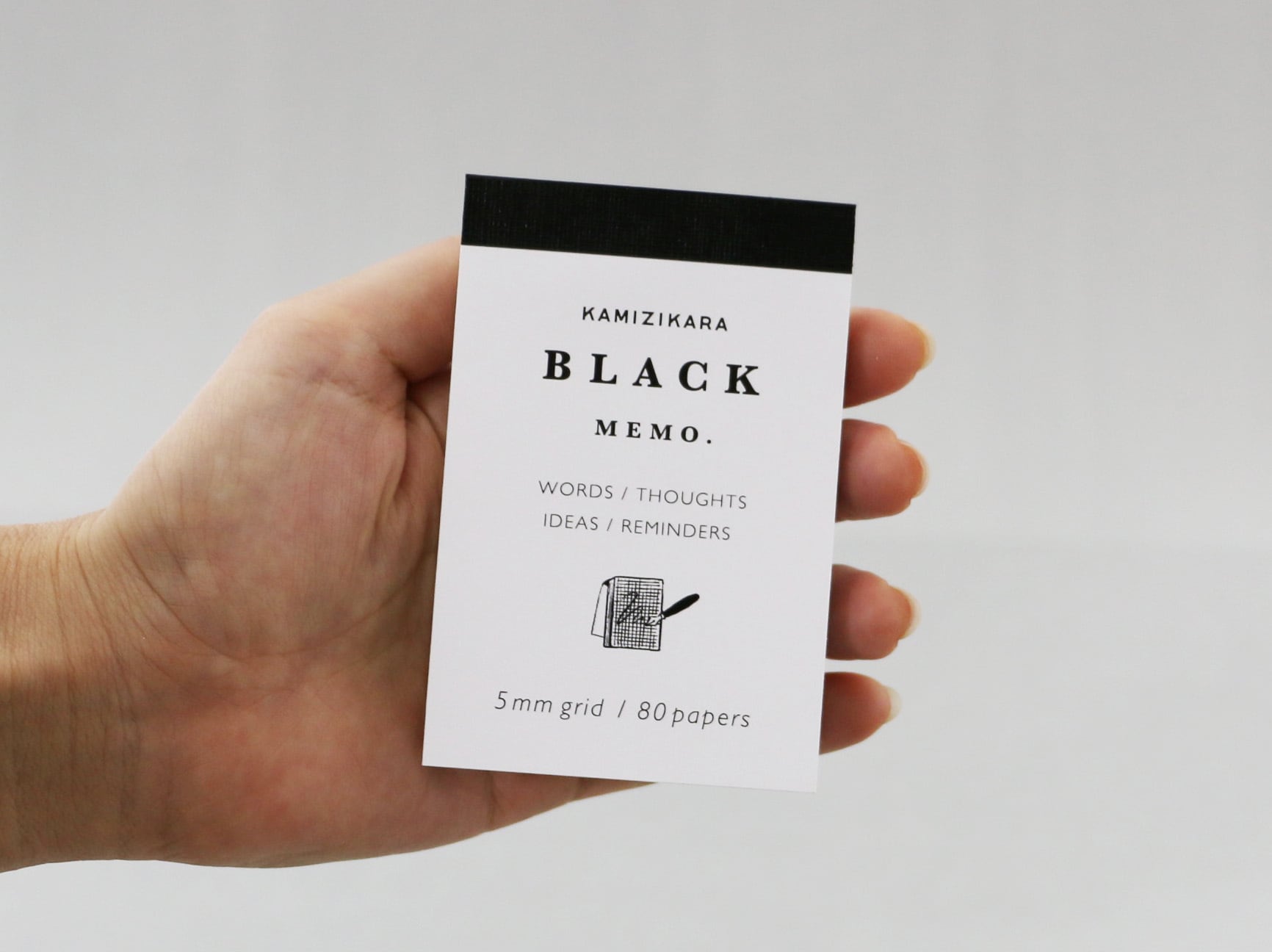 黒一色で統一されたミニマルなデザインは、主張しすぎず、それでいて確かな存在感を放ちます。会議の場やクライアントとの打ち合わせなど、少し緊張感のあるシチュエーションでも、このメモ帳なら自然と手になじみます。